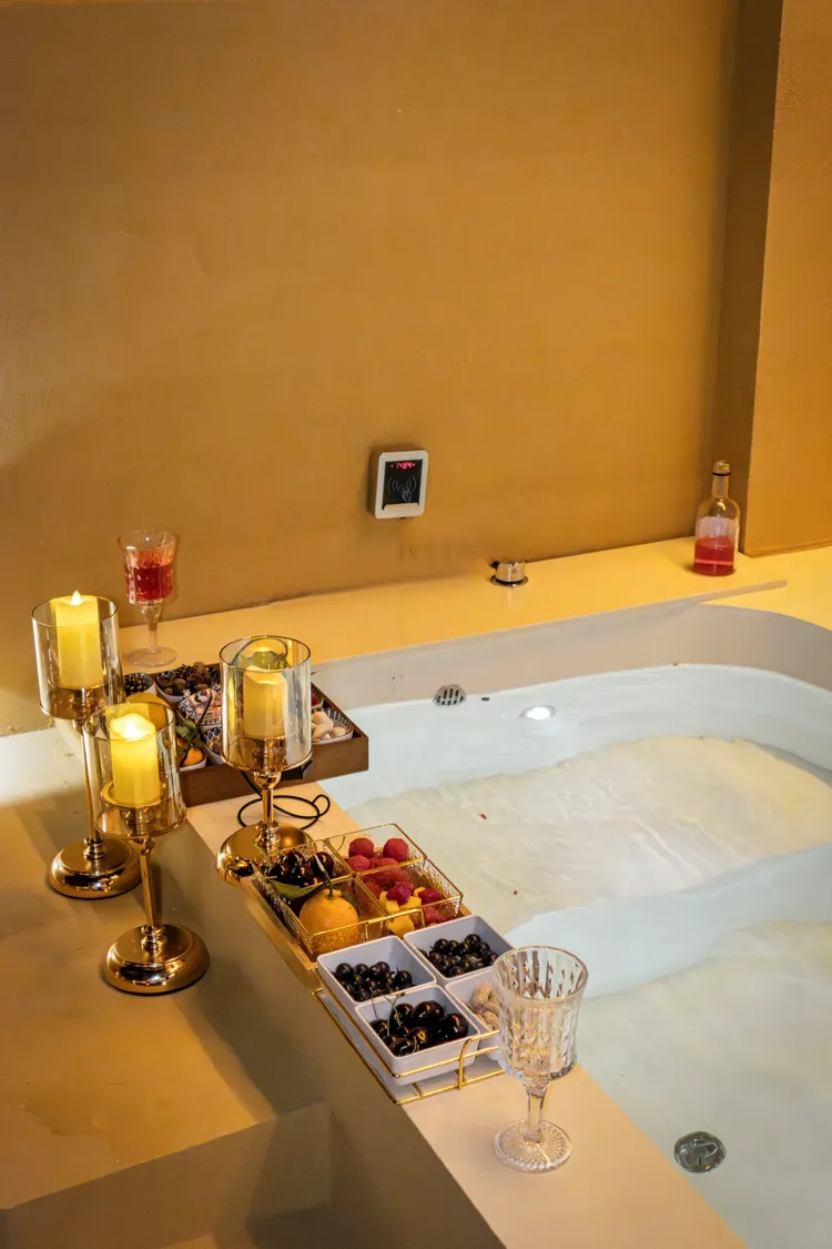 一户一私汤:每间客房(电竞房除外)配独立泡池,私密泡浴舒缓身心
