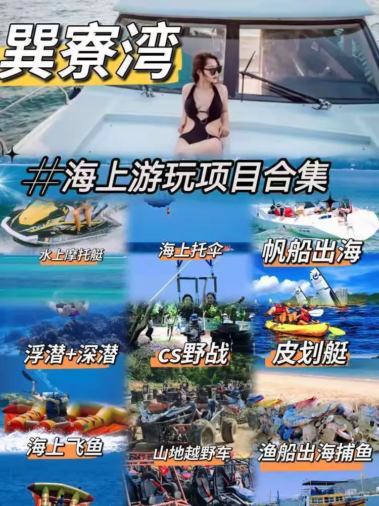 菜市场、沙滩、海景餐厅、海鲜排挡、天后宫、磨子石公园、三角洲岛、沙滩烧烤、帆船基地、海景水库绿道、湖心垂钓、快艇出海等