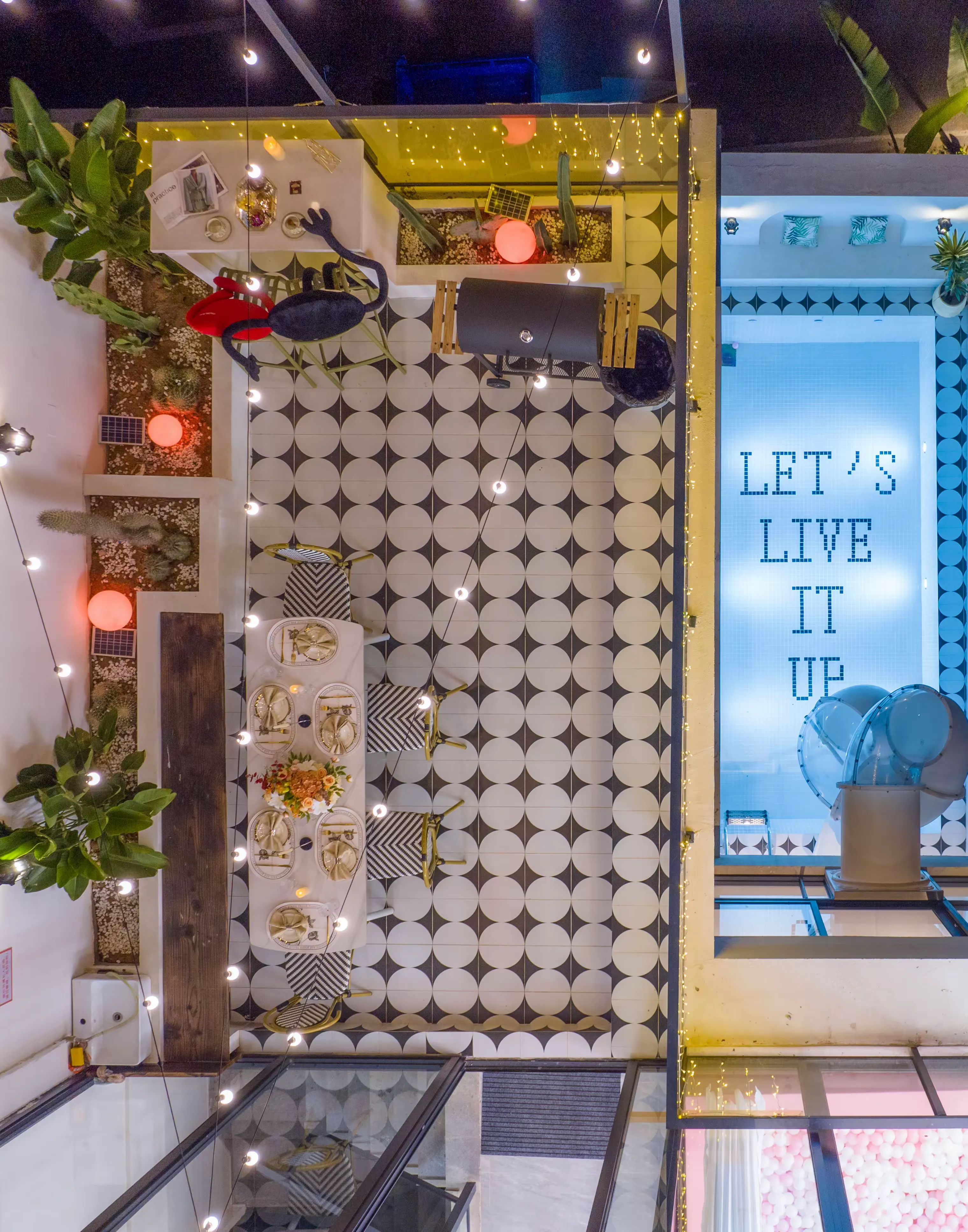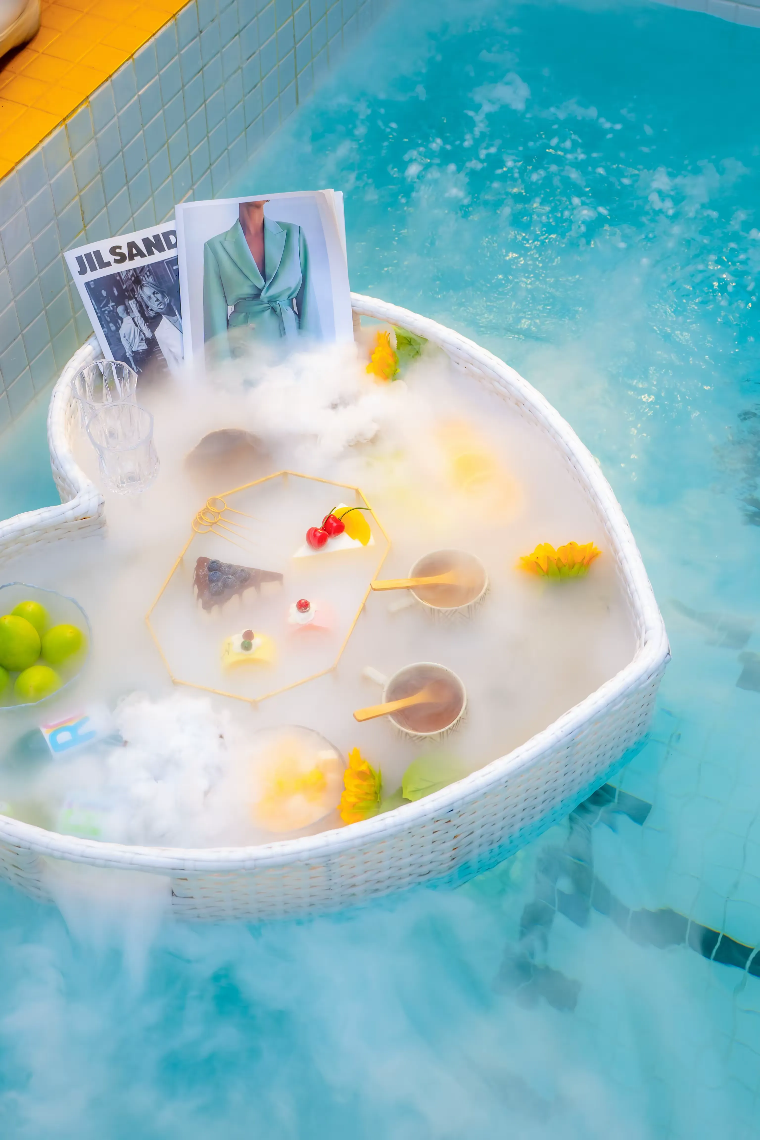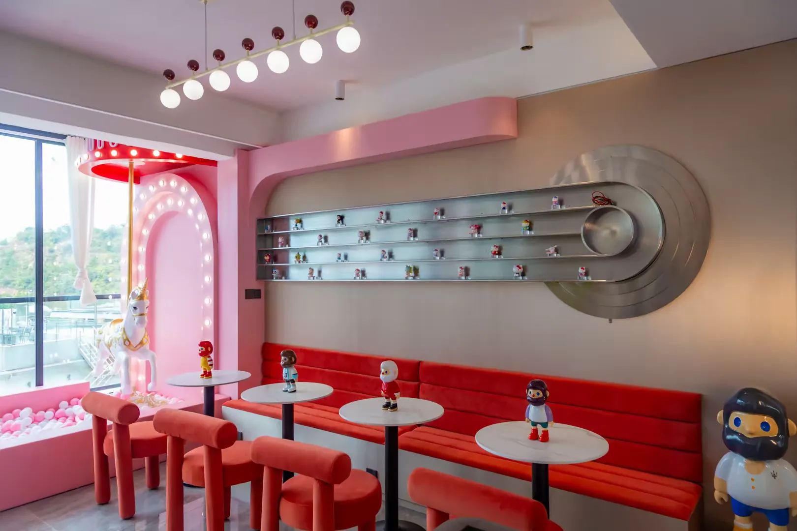 美宜佳便利店、华润万家旗下乐购超市、海鲜排挡、小区食堂、UFO无边际泳池等